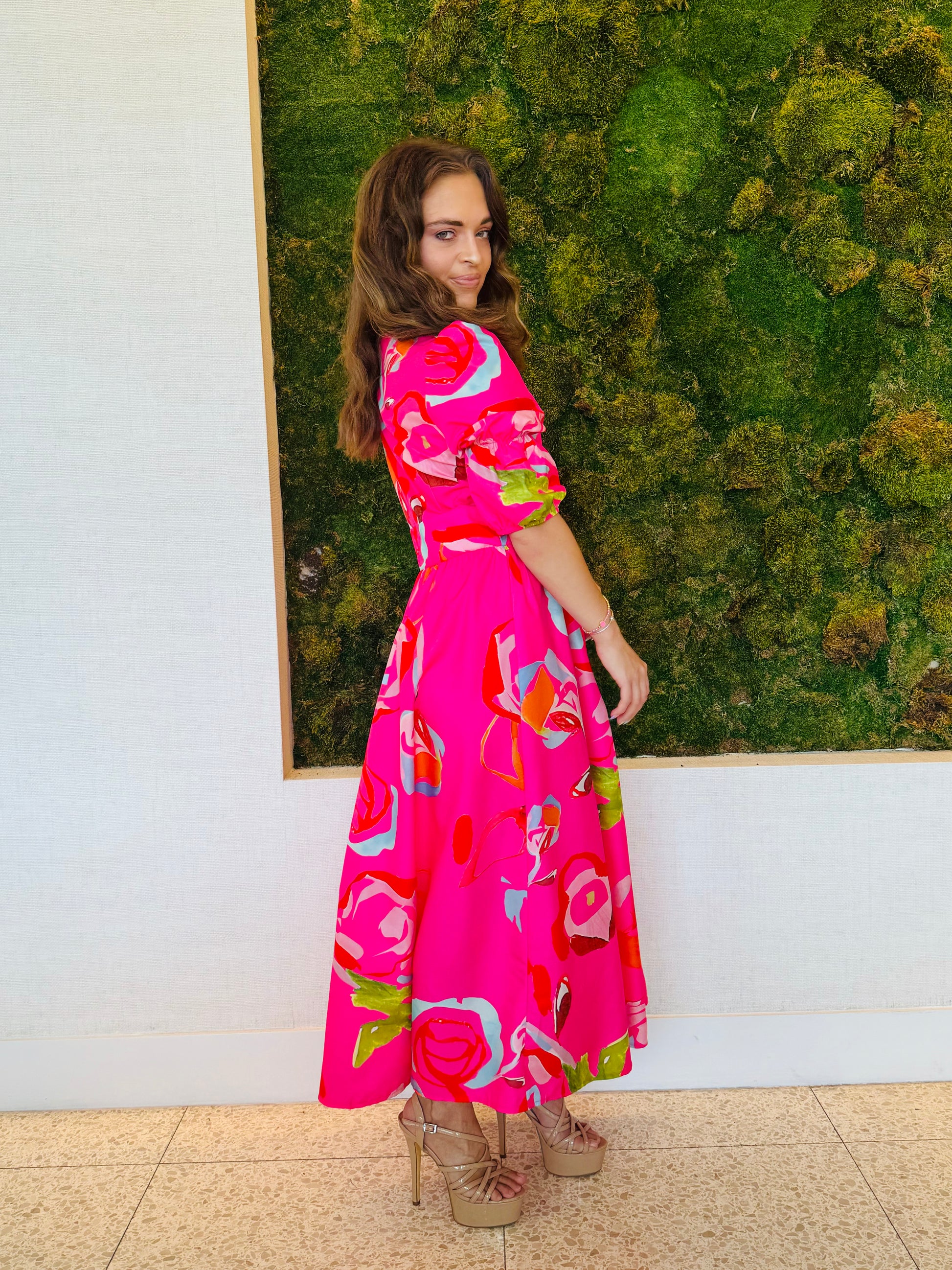 The Abbie hot pink floral maxi dress commands attention with its vibrant hue and elegant floral design. This flowing maxi silhouette offers a graceful, flattering fit that enhances your natural shape while providing ease and comfort. Ideal for both formal events and stylish gatherings, the dress blends bold color with timeless sophistication. Its refined craftsmanship ensures you make a confident and memorable impression wherever you wear it.
