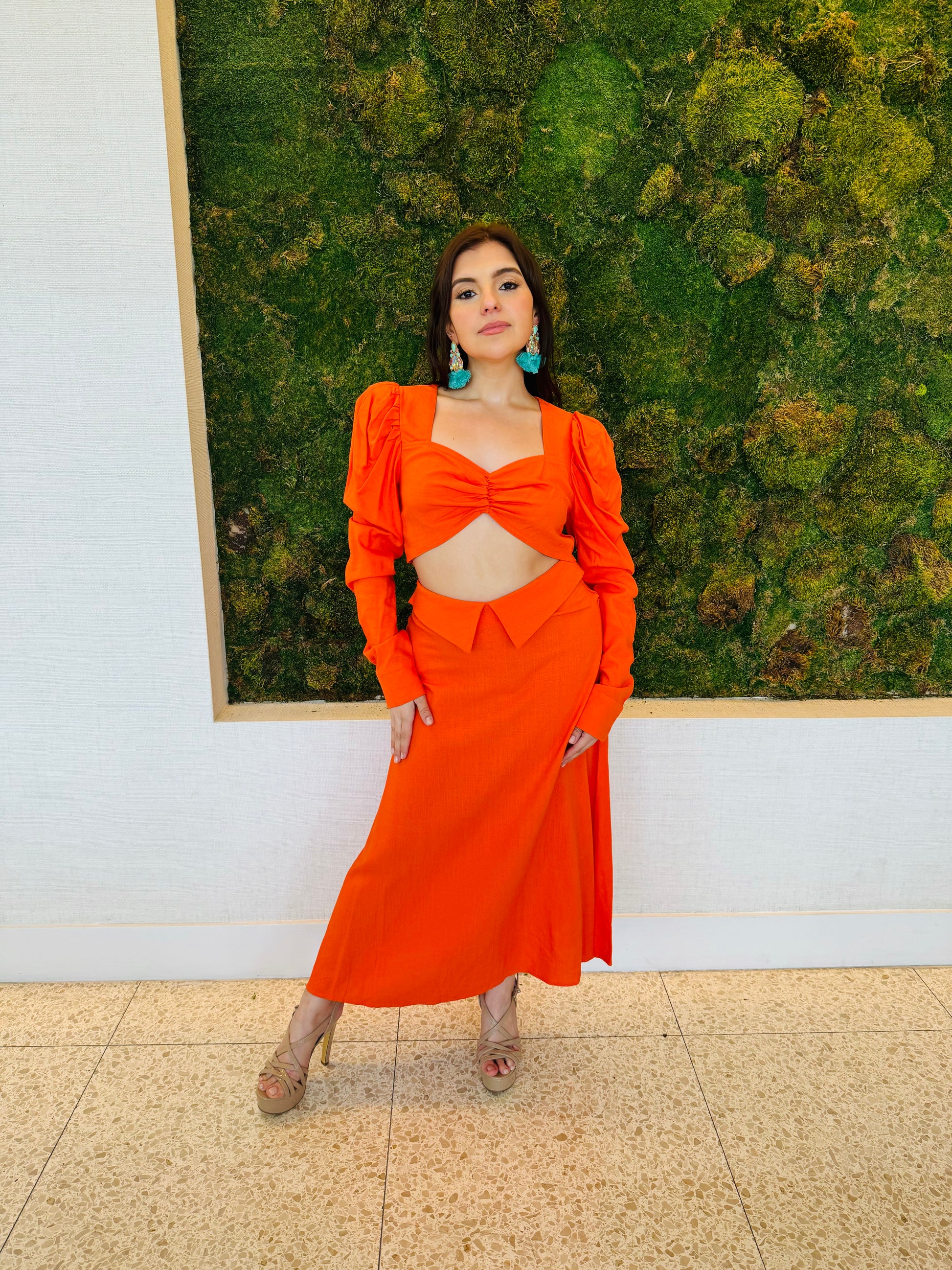 Elevate your style with the Alexandra orange linen midi skirt, a bold statement piece designed for those who dare to stand out. Crafted from breathable linen, this skirt offers a perfect balance of comfort and flair. Its vibrant orange hue commands attention, while the midi length adds a touch of sophistication. Whether you're heading to a sunlit brunch or an evening gathering, the Alexandra skirt moves with you, making every step confident and striking. Embrace daring elegance and let your wardrobe radiate warmth and fearless charm.