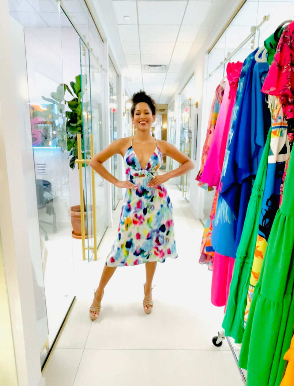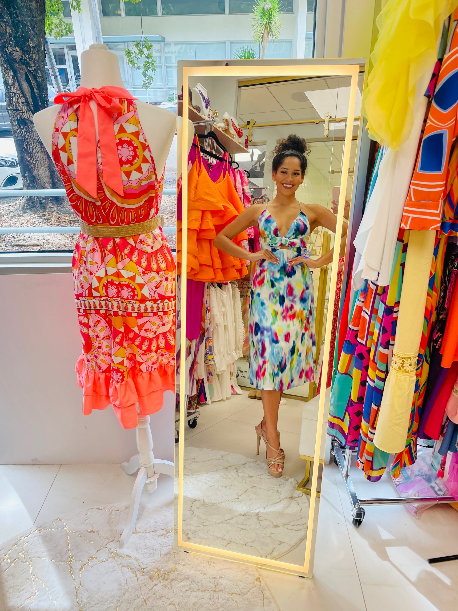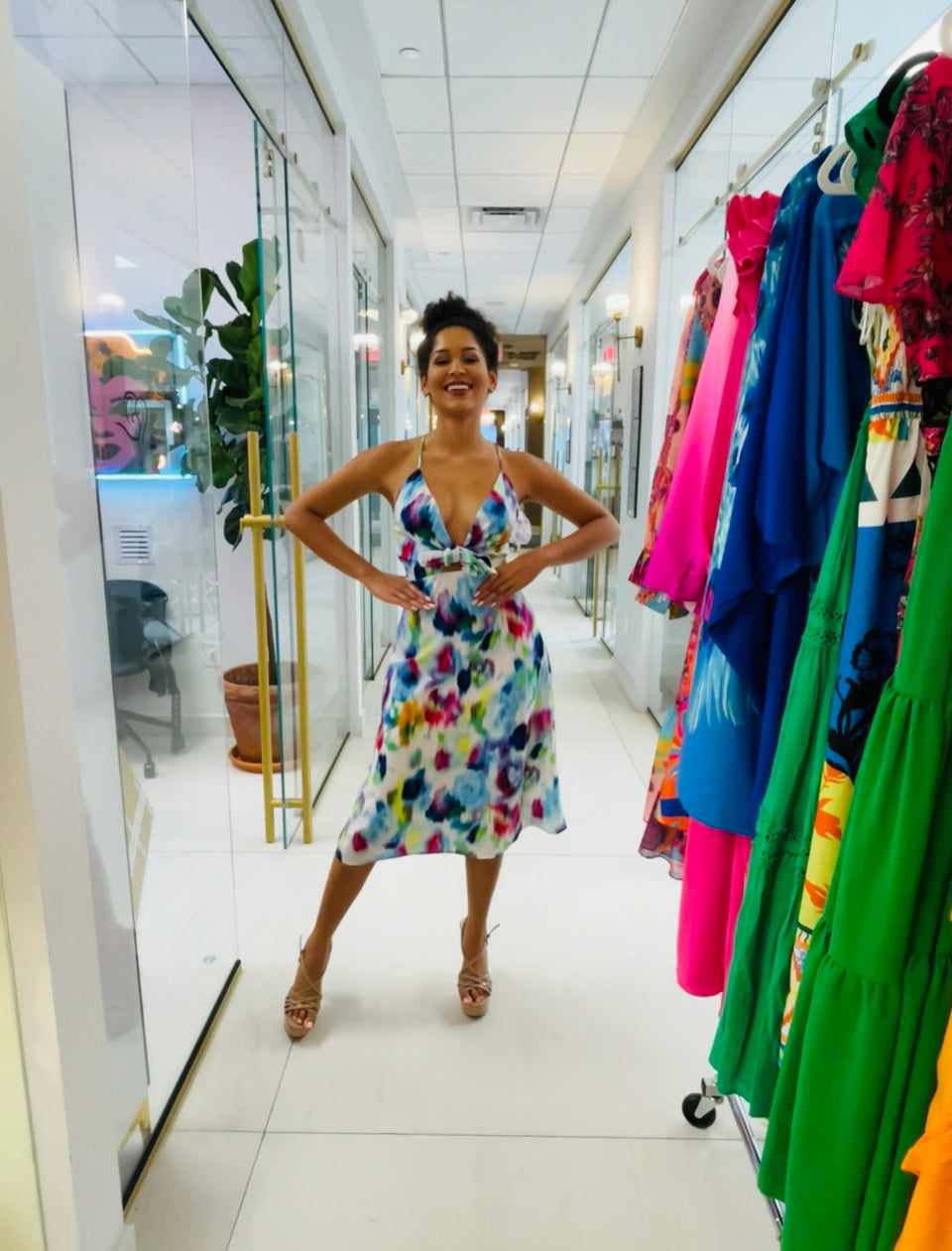 The Aria Midi Dress in abstract print is a daring statement piece that effortlessly blends bold design with elegant details. Featuring a captivating blue and white abstract pattern, this tie-back dress offers a modern silhouette that highlights your shape while providing adjustable comfort. The midi length adds a sophisticated touch, while the artistic print and flowing fabric ensure you stand out with fearless confidence. Perfect for those who want to make an unforgettable impression, the Aria dress is a celebration of contemporary style and daring femininity.