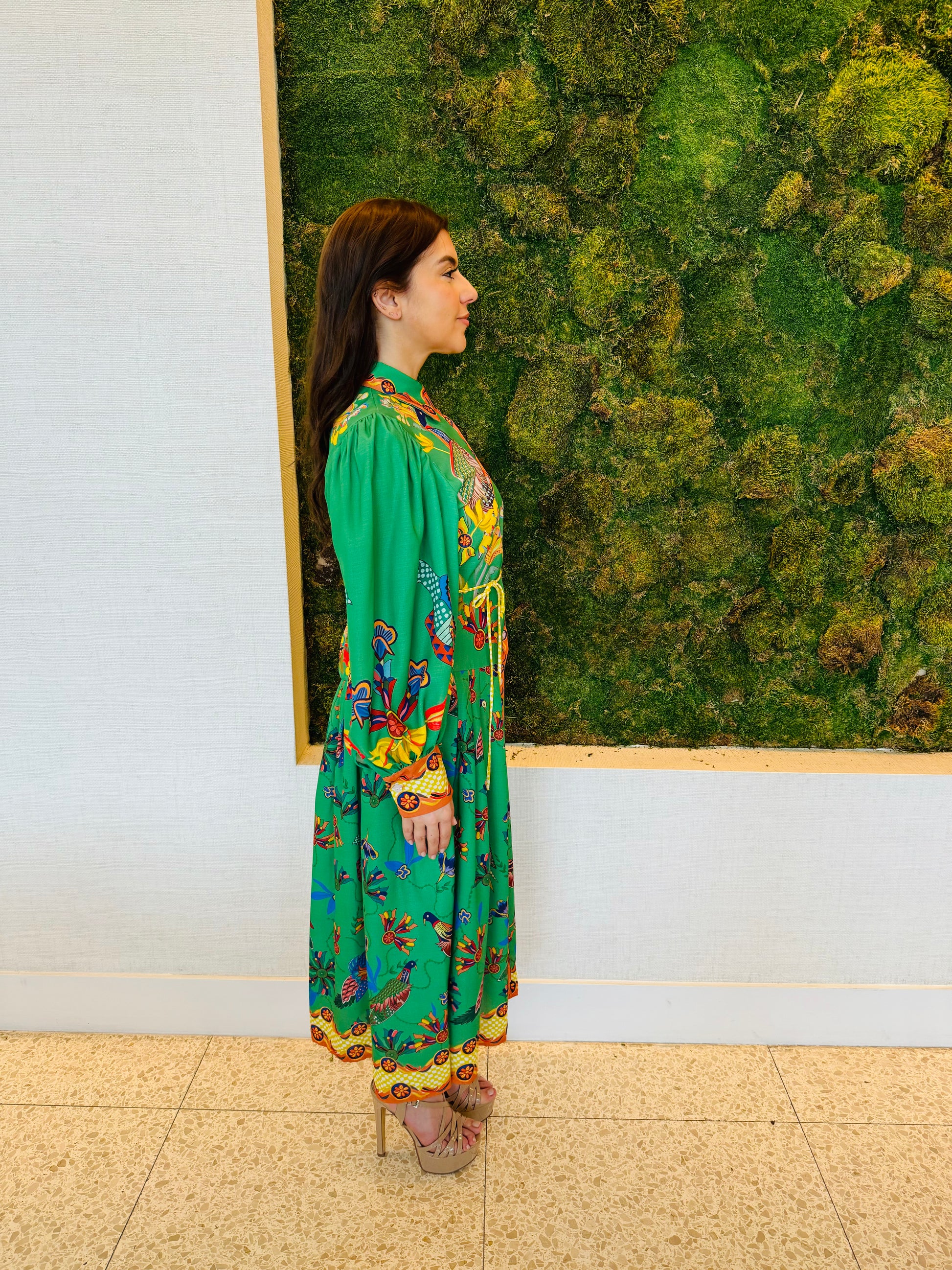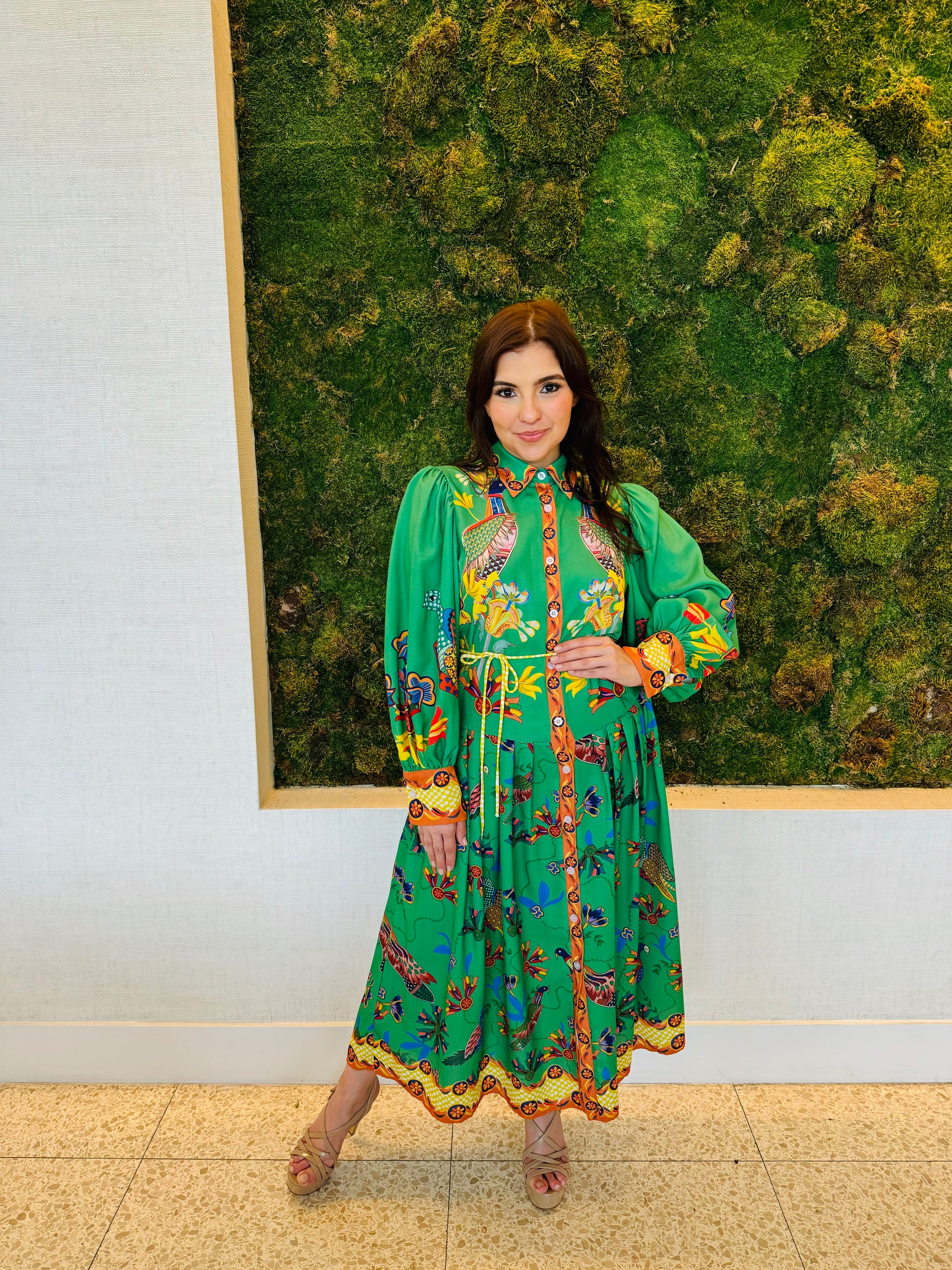 Stand out boldly in the Carla green print midi dress, designed with striking oversized sleeves that add dramatic flair to its elegant silhouette. This daring piece features a vibrant green print that captures attention and fuels confidence. The midi length balances sophistication with adventurous style, making it perfect for occasions where you want to make a powerful statement. Crafted to flow gracefully while embracing bold design elements, the Carla dress lets you express your fearless fashion sense with unforgettable impact. Elevate your wardrobe with a dress that’s as confident and unique as you are.