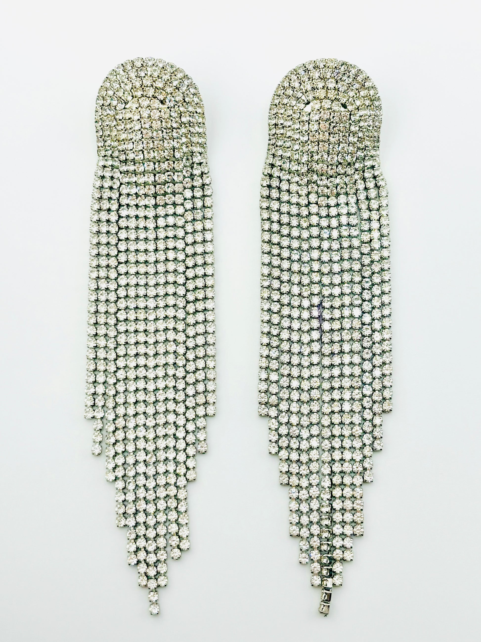 Elegant silver drop earrings featuring precision-set rhinestones that capture and reflect light with exceptional brilliance. The Catalina design offers sophisticated movement and versatility, transitioning seamlessly from daytime professional settings to evening occasions. Crafted with attention to detail for optimal weight distribution and comfort.