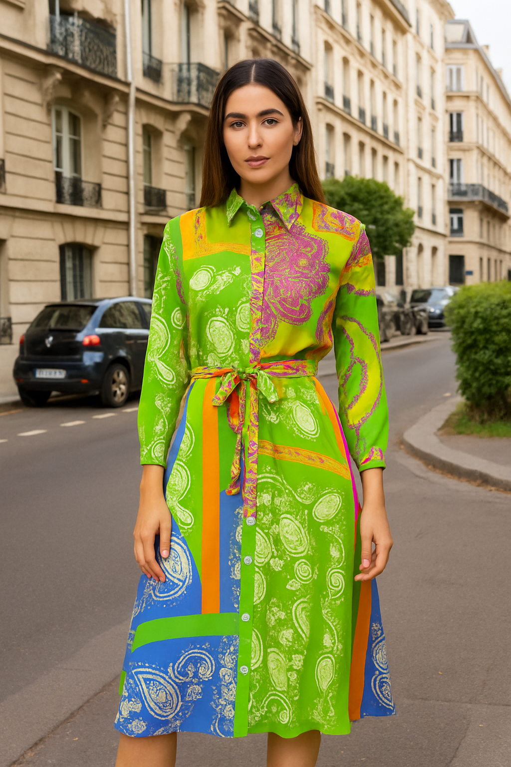 Step boldly into effortless style with the Clover Shirt Dress, crafted from luxurious silk that feels as stunning as it looks. Featuring a vibrant floral print, this dress channels the essence of nature with a daring twist. Its versatile design allows you to wear it up for a polished look or down for relaxed confidence, making it perfect for any occasion where you want to stand out. Embrace the fearless spirit of the Clover dress and let its lively pattern and silky texture awaken your wardrobe with fresh, captivating energy.