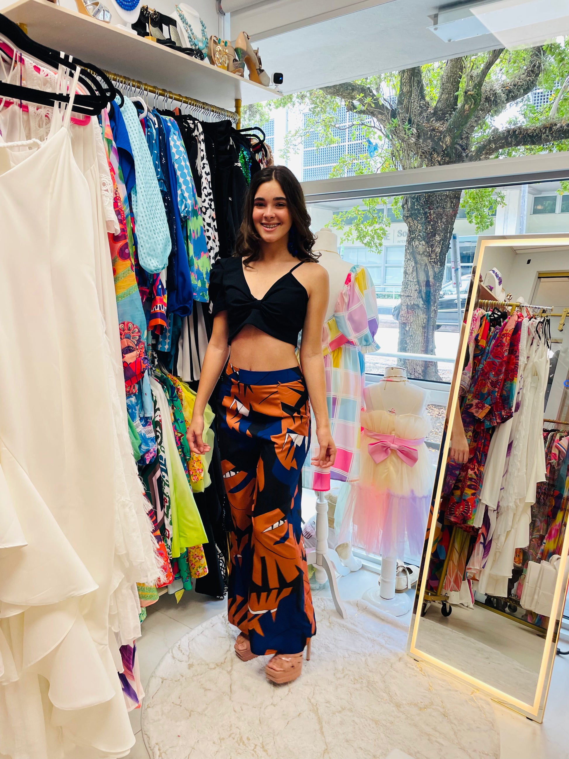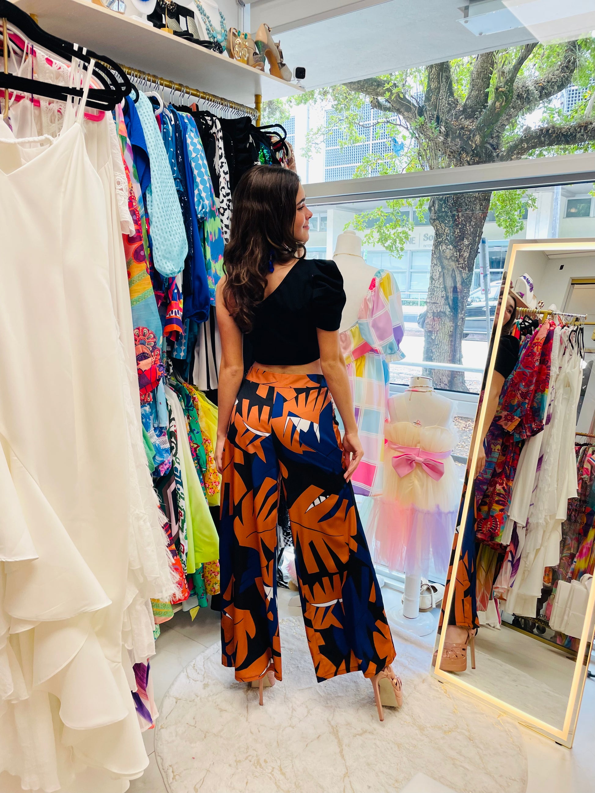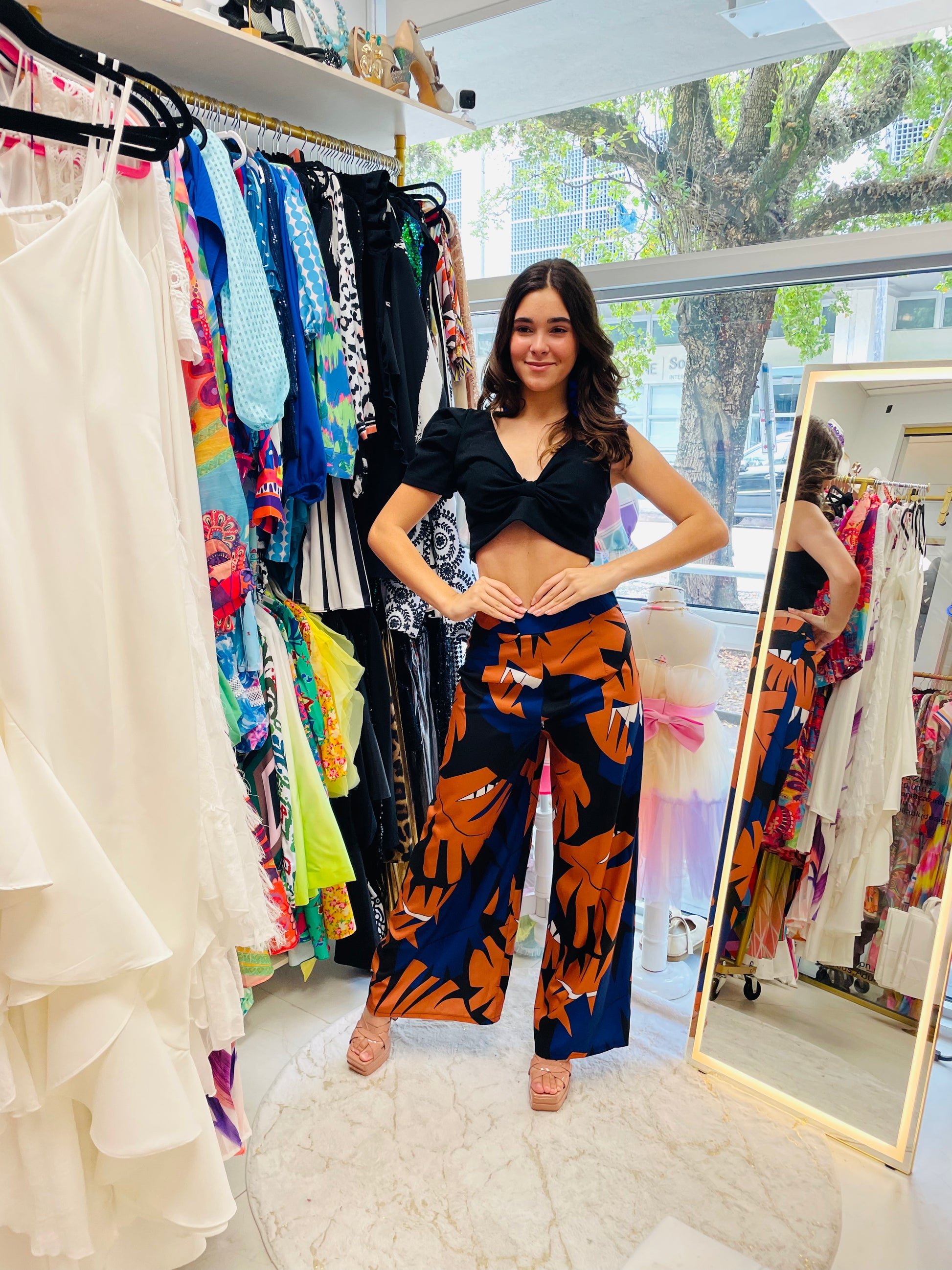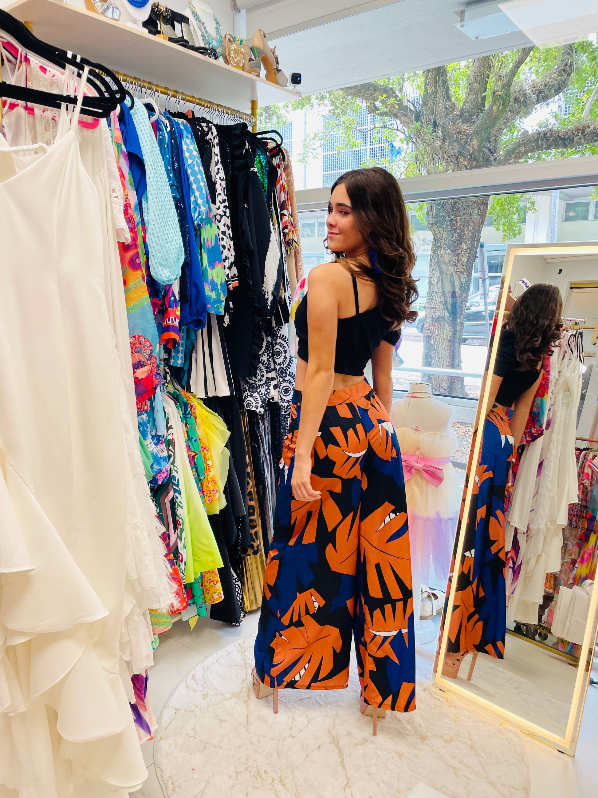 Make a bold statement with the Lorenza Palazzo Pants in a lively black and blue floral print. These wide-leg pants flow effortlessly with every step, offering both comfort and a fashionable flair. The vibrant pattern adds a playful touch to your outfit, making them perfect for everything from casual outings to garden parties. Pair them with a simple top to let the pants take center stage, or mix and match for a colorful, spirited look. With Lorenza, you get style that’s as fun as it is flattering.