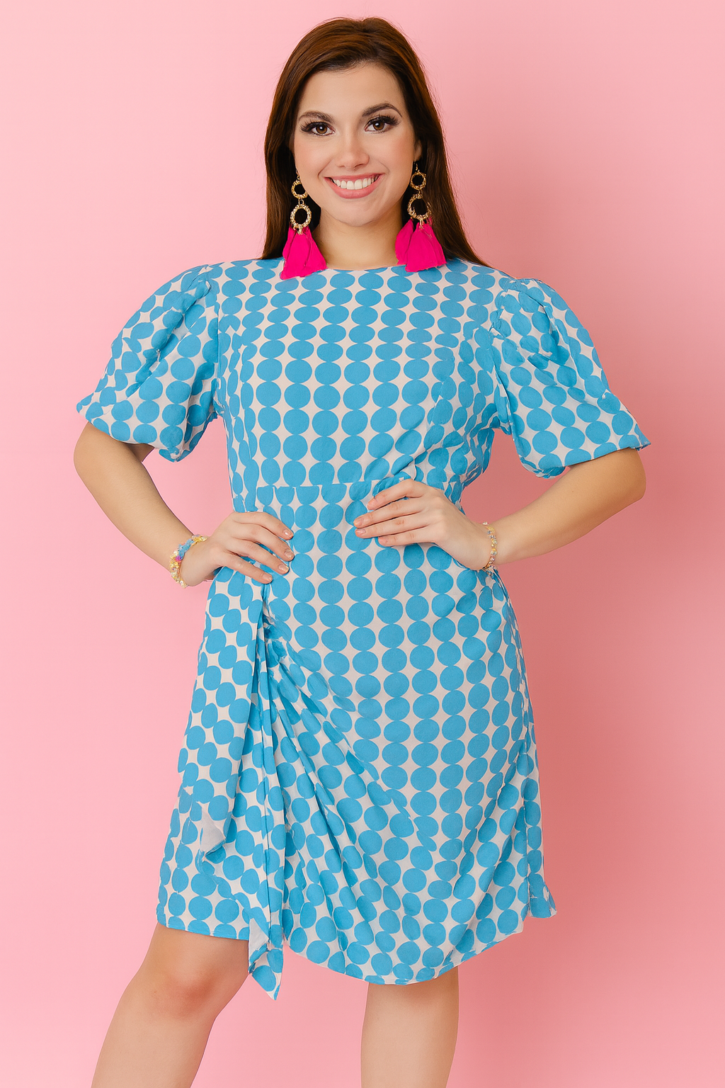 The Ebony faux side wrap dress in light blue polka dots offers a sophisticated reinterpretation of a classic pattern. Featuring a faux side wrap design, it creates a flattering silhouette that accentuates the waist while providing ease of movement. The subtle polka dot print adds a playful yet elegant touch, perfect for both professional settings and refined social occasions. This dress combines timeless style with modern comfort, making it a versatile addition to any wardrobe seeking understated sophistication.