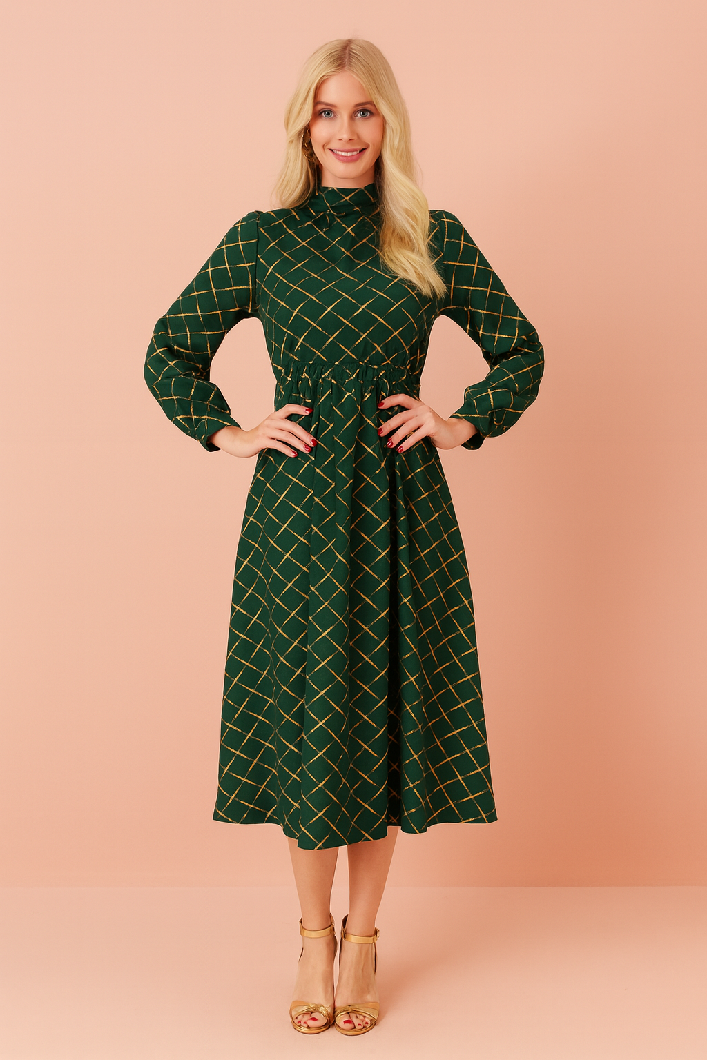 The Evelyn maxi dress in a rich green print with subtle gold accents exudes refined elegance and timeless sophistication. Its flowing silhouette gracefully drapes the body, creating a flattering and comfortable fit ideal for formal occasions or upscale gatherings. The delicate gold detailing adds a touch of luxury and visual interest, elevating the dress’s classic design. Crafted with meticulous attention to detail, the Evelyn dress seamlessly combines comfort, style, and a polished aesthetic for a distinguished wardrobe staple.