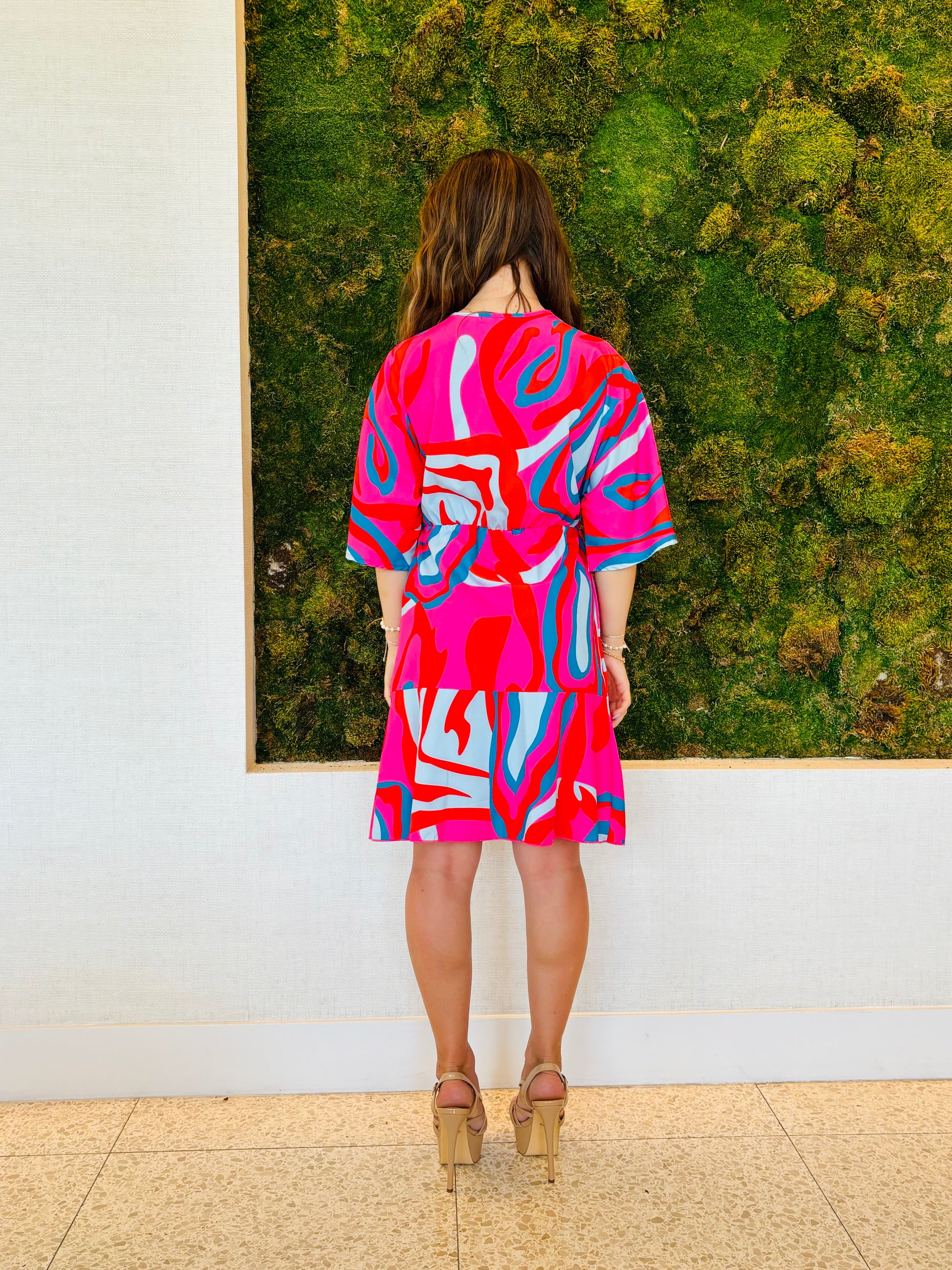 The Gemma pink and red flowy faux wrap dress embodies refined elegance through its delicate color combination and graceful silhouette. Designed to mimic the flattering contours of a traditional wrap, this dress enhances your figure while offering effortless comfort. The flowy fabric moves beautifully with you, adding a sense of lightness and sophistication to every step. Perfect for both upscale daytime events and intimate evening occasions, Gemma’s subtle blend of pink and red tones exudes a timeless charm that elevates your wardrobe with a modern, polished statement.