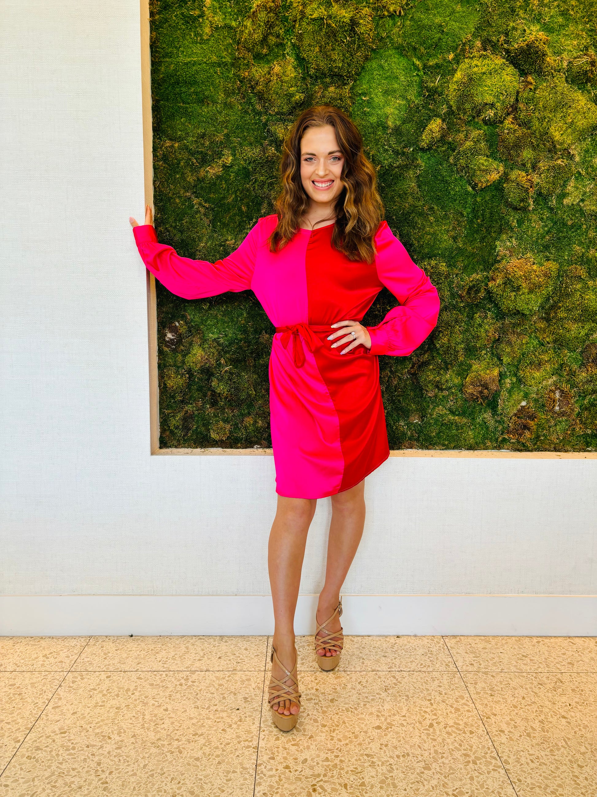 Heidi red and fucsia charmeuse color block dress
