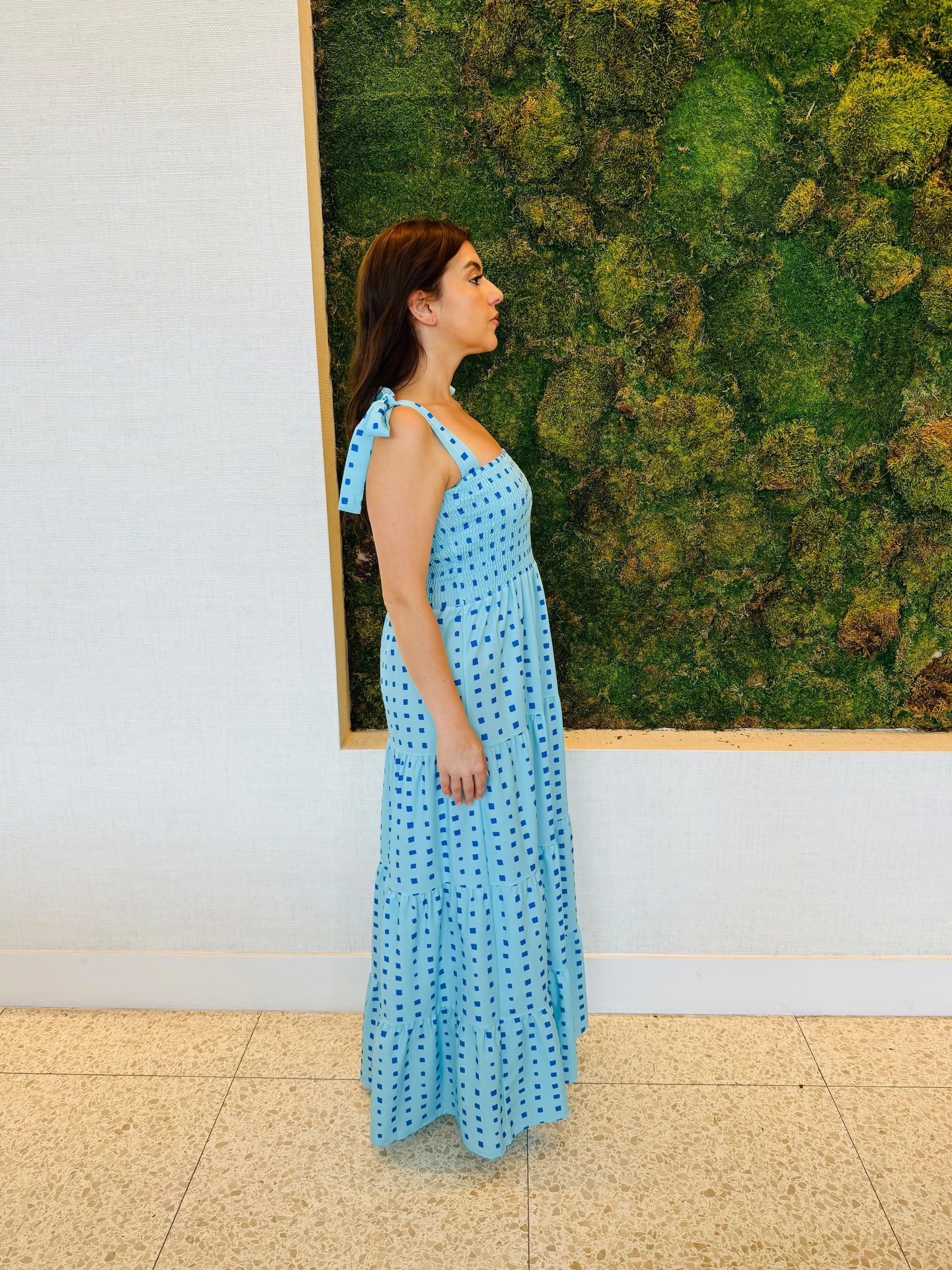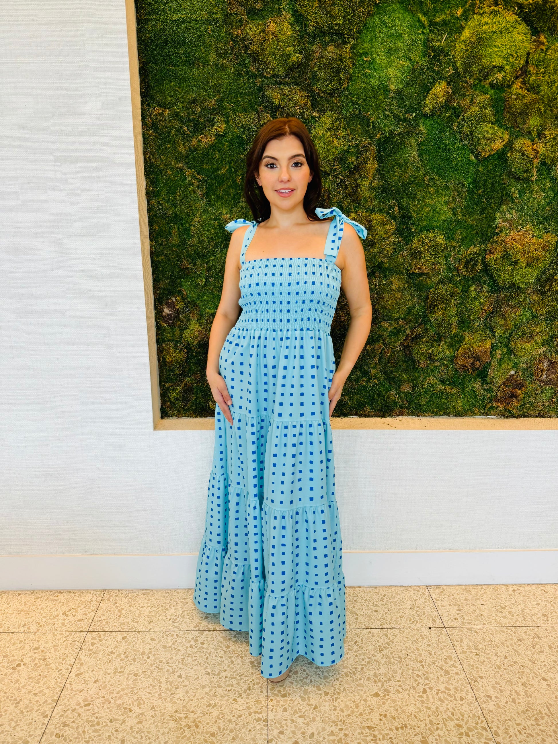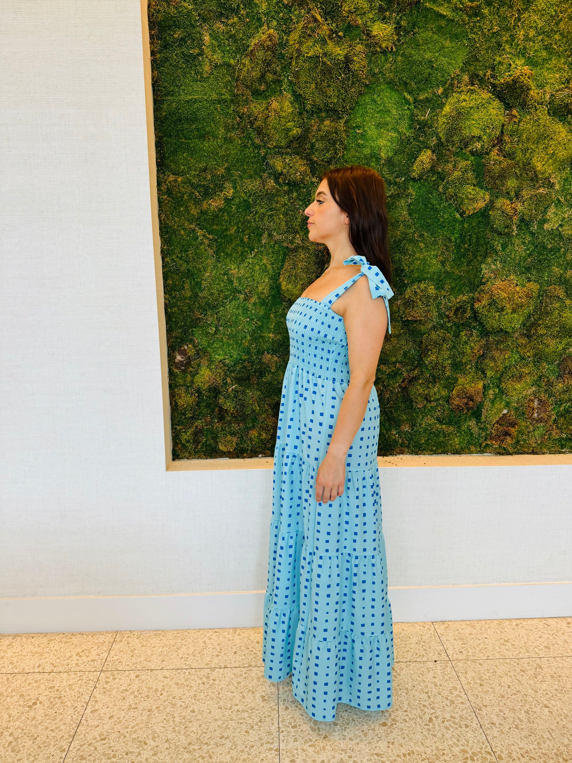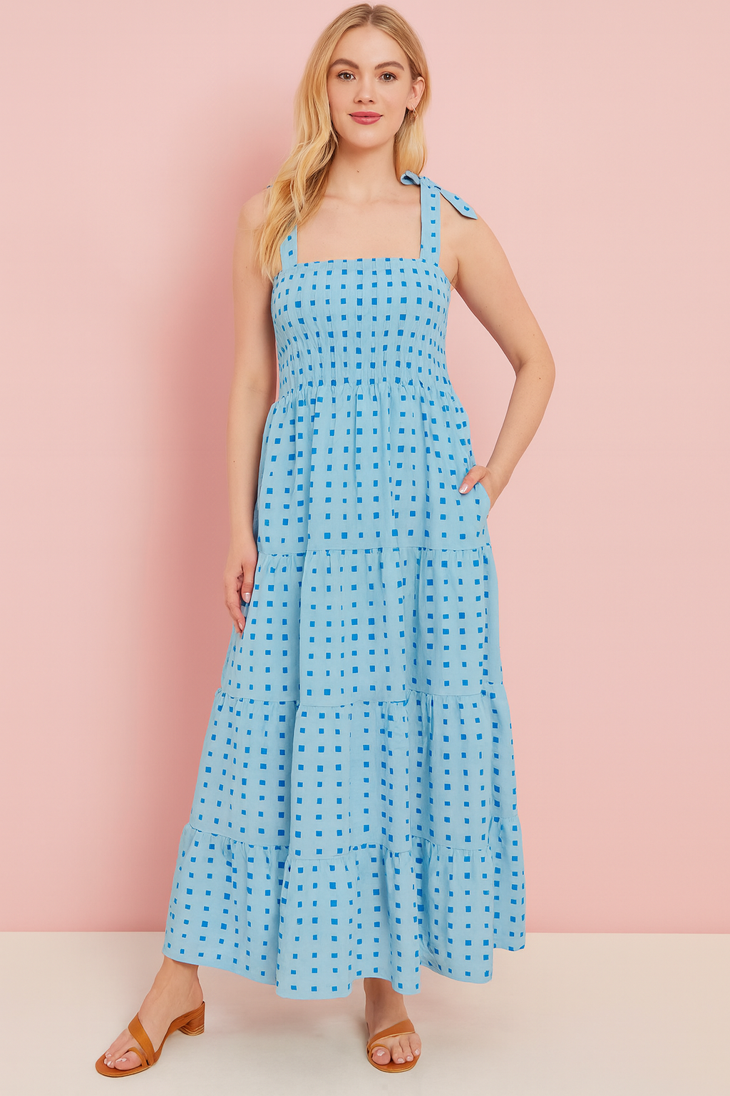The Karla blue and light blue geometric print maxi dress offers a striking blend of modern design and timeless elegance. Its carefully crafted geometric pattern in soothing blue tones creates a visually captivating effect, while the maxi length enhances its graceful silhouette. Designed to provide both style and comfort, this dress drapes fluidly, making it ideal for formal events or stylish daytime affairs. Whether paired with heels or sandals, the Karla maxi dress exudes sophistication and artistic charm, perfect for women seeking a refined yet distinctive wardrobe staple.
