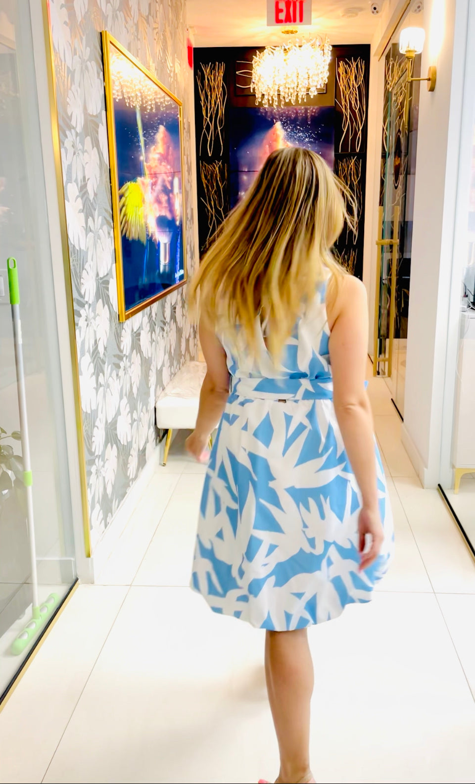 The Maryah periwinkle and white puffy dress features a striking deep V-neckline that enhances its elegant silhouette. Showcasing a delicate periwinkle and white print, this dress combines softness with a refined aesthetic. The puffed sleeves add a touch of romantic volume, creating a timeless and sophisticated look ideal for date nights or special occasions. Designed to flatter and captivate, the Maryah dress effortlessly balances charm and grace, making it a distinctive addition to any wardrobe.