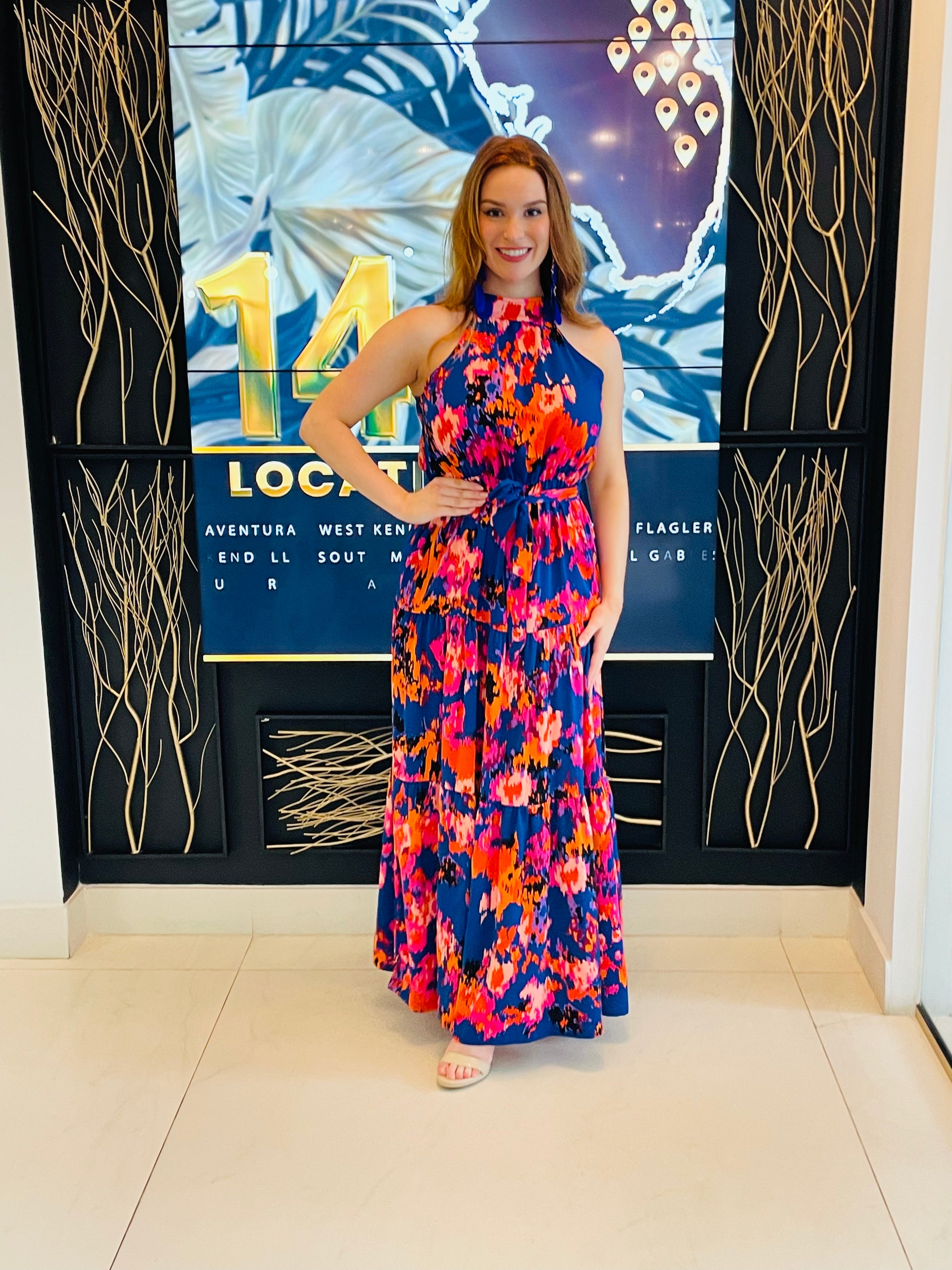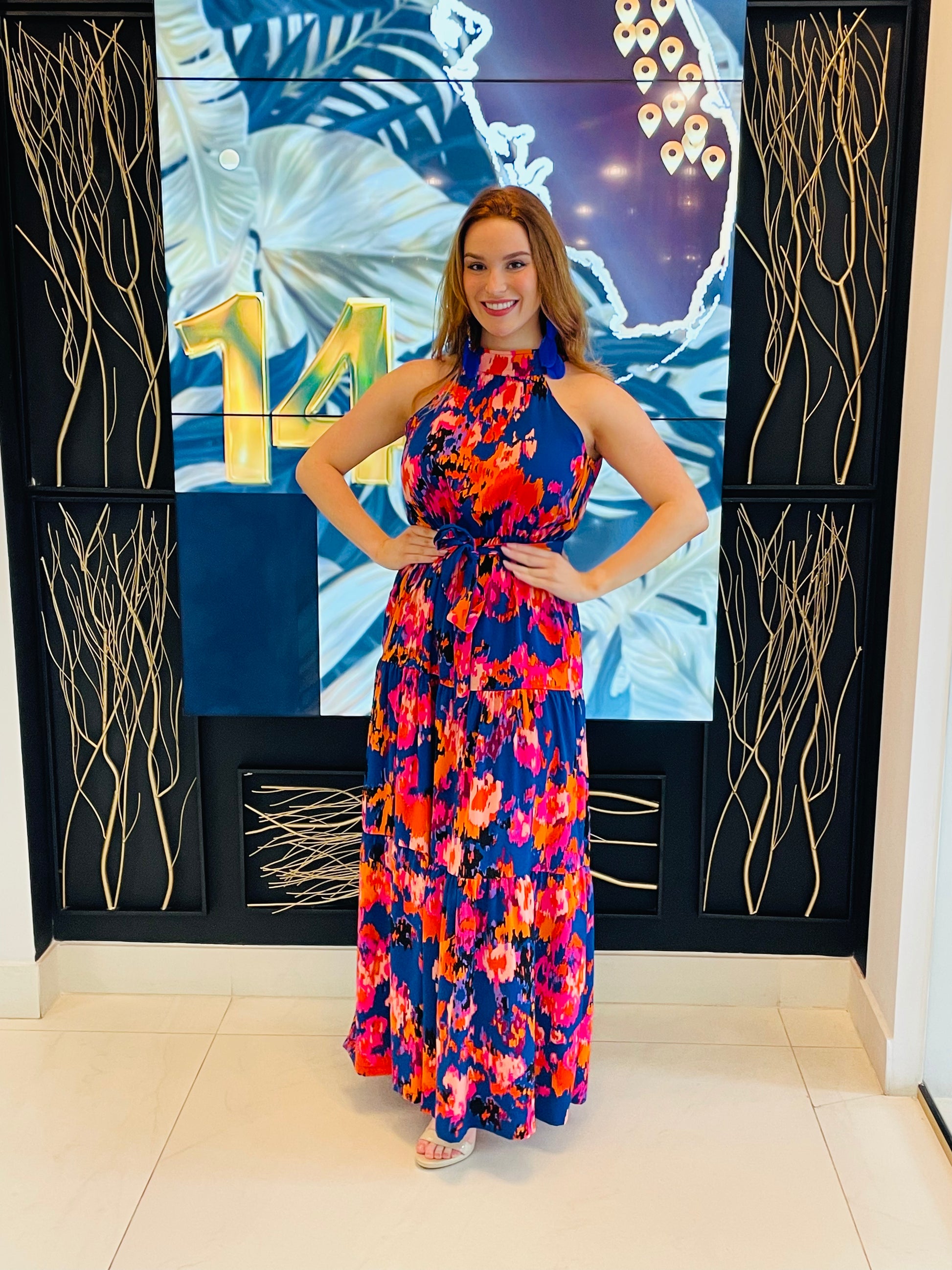 The Rebecca maxi dress features a stunning blue floral print that brings a fresh and elegant charm to its long, flowing silhouette. Sleeveless by design, it beautifully showcases the shoulders while offering a comfortable and airy fit ideal for warm weather or layered looks. The dress’s length and pattern create a graceful presence, perfect for sophisticated occasions or stylish daytime events. Crafted with attention to detail, the Rebecca dress combines classic femininity with contemporary refinement, making it a timeless piece in any wardrobe.